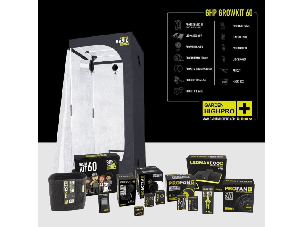 - Súčasťou balenia je všetko, čo potrebujete na pestovanie svojich rastlín: od piatich 11-litrových kvetináčov z geotextílie PROPOT až po termohygrometer PROHYGRO BASIC na monitorovanie teploty a vlhkosti.