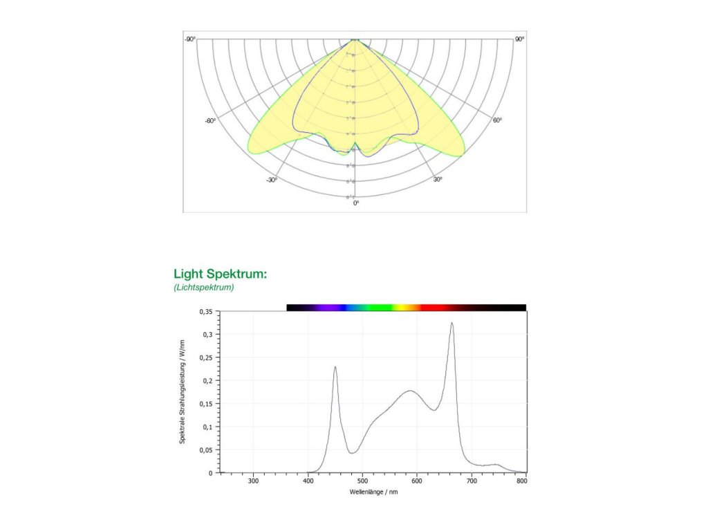 Samozrejme, s radom EVO ponúkame pokročilú účinnosť viac ako 3 µmol/J na úrovni modulu. Pri vývoji sme však oveľa viac pozornosti venovali výťažnosti na plochu a čas. V nespočetných empirických pokusoch s konope a inými rastlinami bolo spektrum optimalizované čo najlepšie. Výsledné širokopásmové svetelné spektrum presahuje bežný rozsah PAR a ponúka pomer ďaleko červenej a červenej farby, ktorý pozitívne ovplyvňuje fotomorfogenézu, a tým aj kvalitu a množstvo úrody.